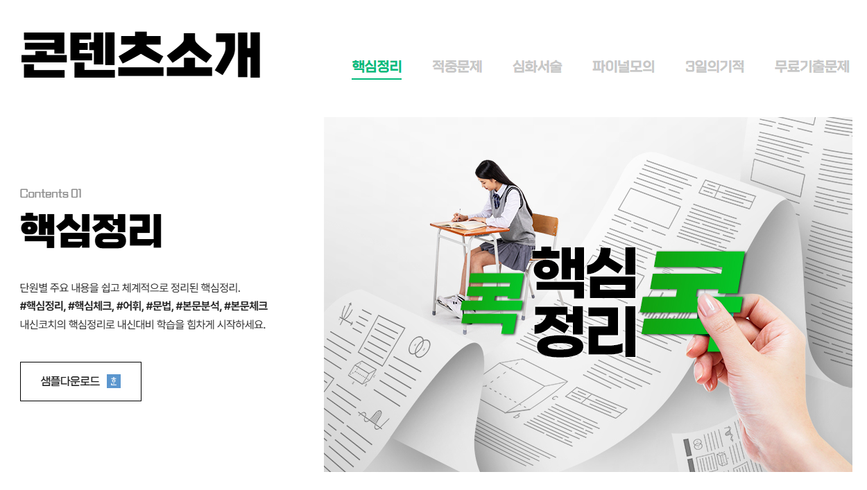또한 내신코치는 개별 교과서와 학교 커리큘럼을 반영해 콘텐츠가 구성되어 있기 때문에, 학년이나 학교에 따라 교재가 달라지는 현실을 잘 반영합니다.
